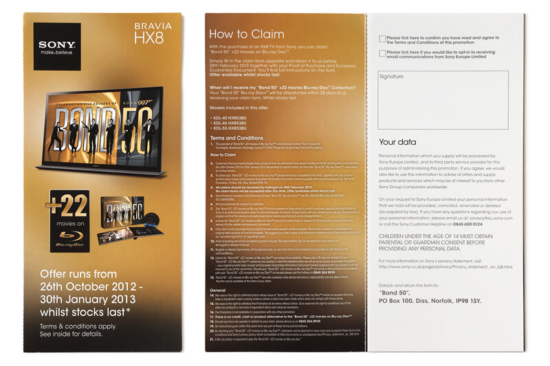 Sony Bravia HX8 and Bond 50 Blu-ray flyer (Sony, UK, 2012)