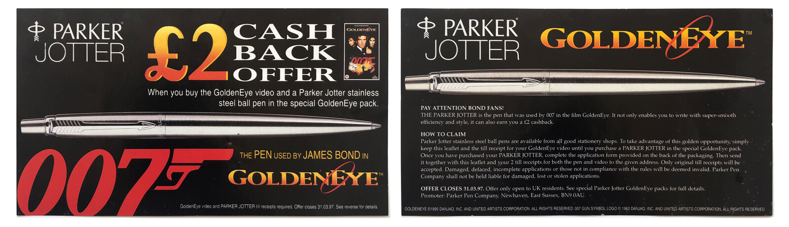 Parker pens GoldenEye promotional flyer (Parker Pen Company, UK, 1995)