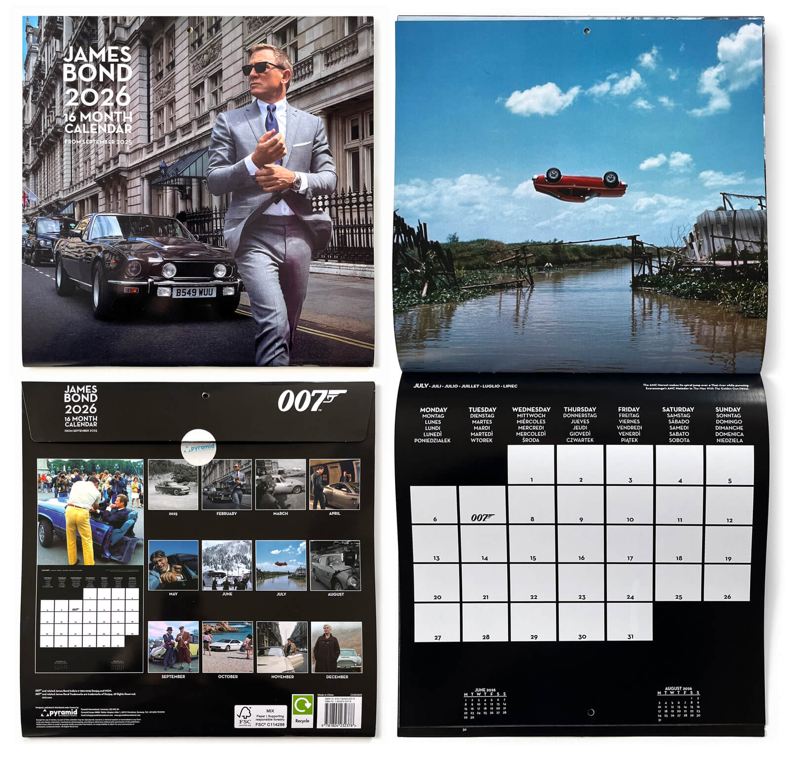 James Bond 2026 official 16 month wall calendar (Pyramid International, UK, 2025)