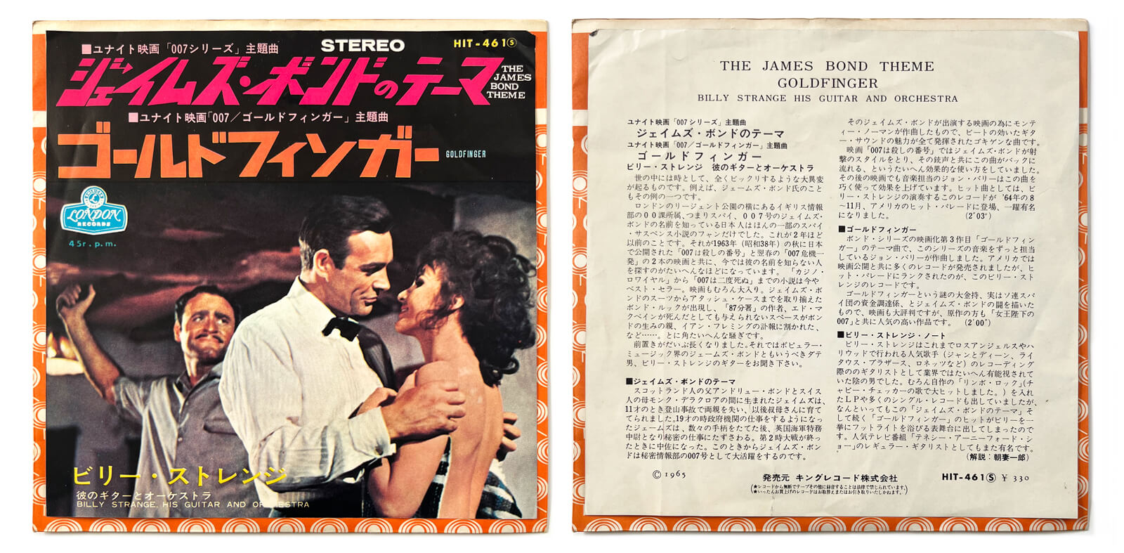 The James Bond Theme and Goldfinger theme performed by Billy Strange, his guitar and orchestra (London Records, Japan, 1965)