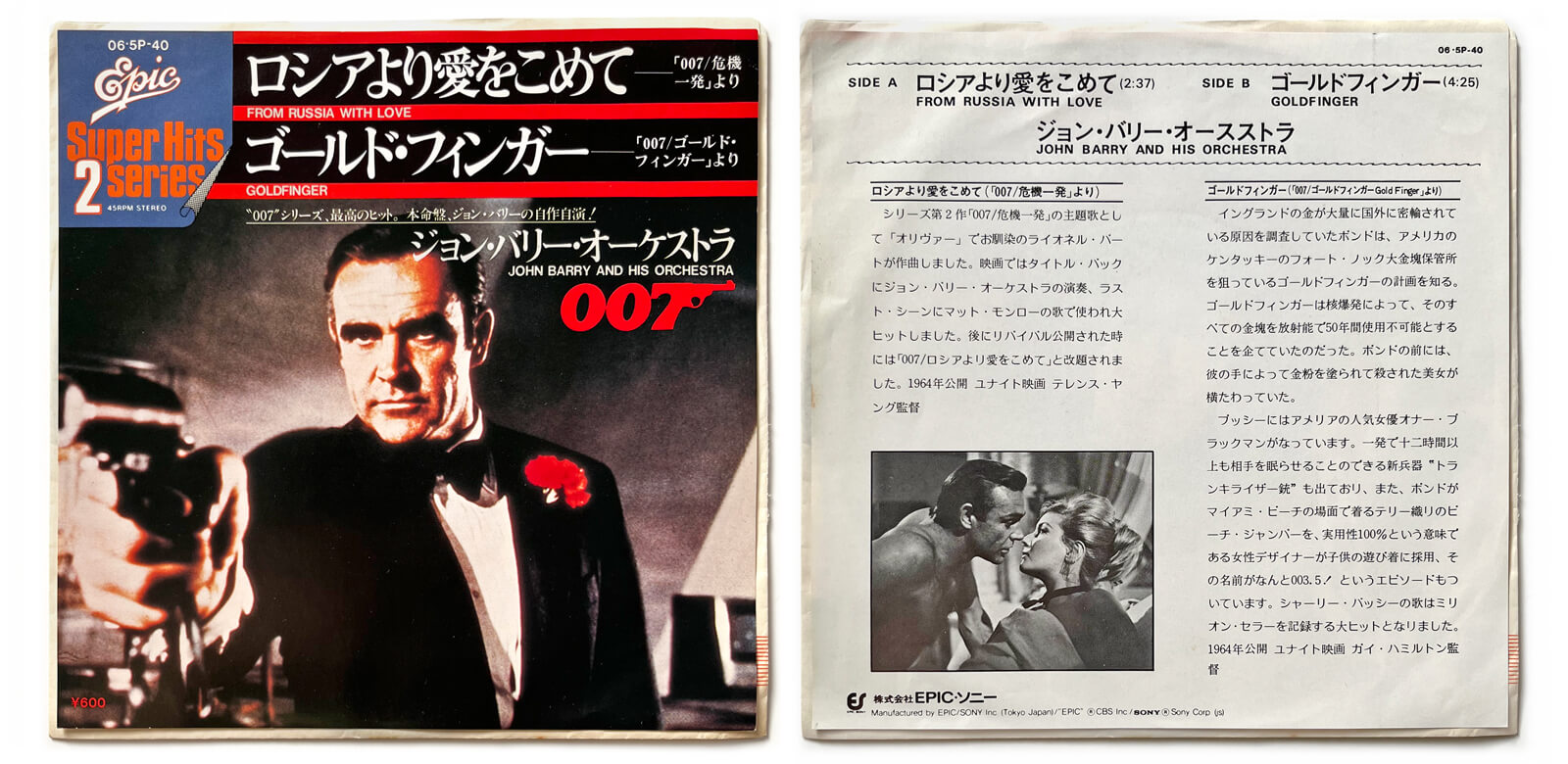 Super Hits 2 Series featuring the themes to From Russia With Love and Goldfinger (Epic.Sony Inc./United Artists Records, Japan, 1972)