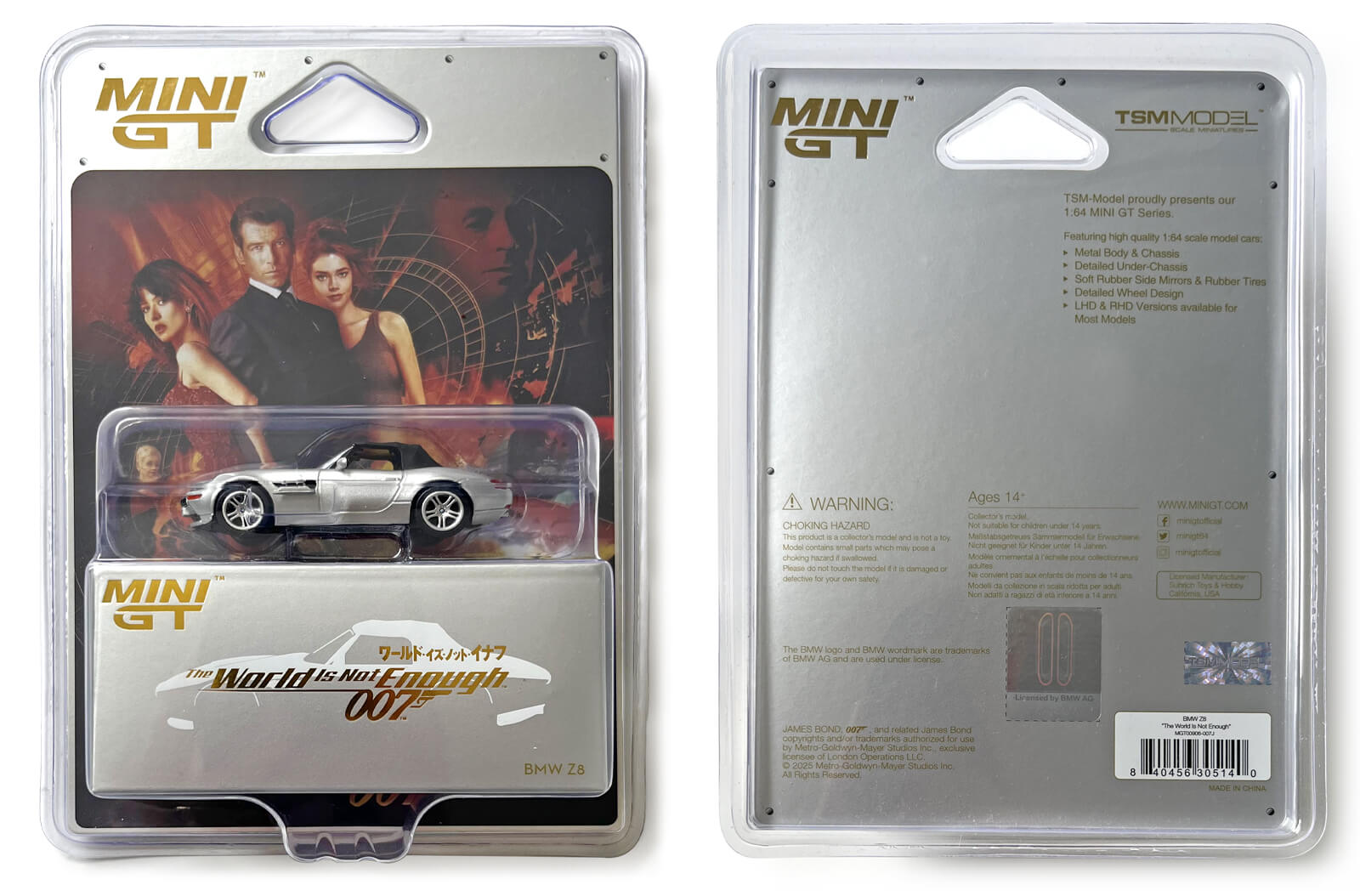 Mini GT BMWZ8 from The World Is Not Enough - This is one of five models of the BMWZ3 from The World Is Not Enough the company produced, this version featuring the Japanese poster artwork for the film (Mini GT/TSM Model Scale Miniature, US, 2025)