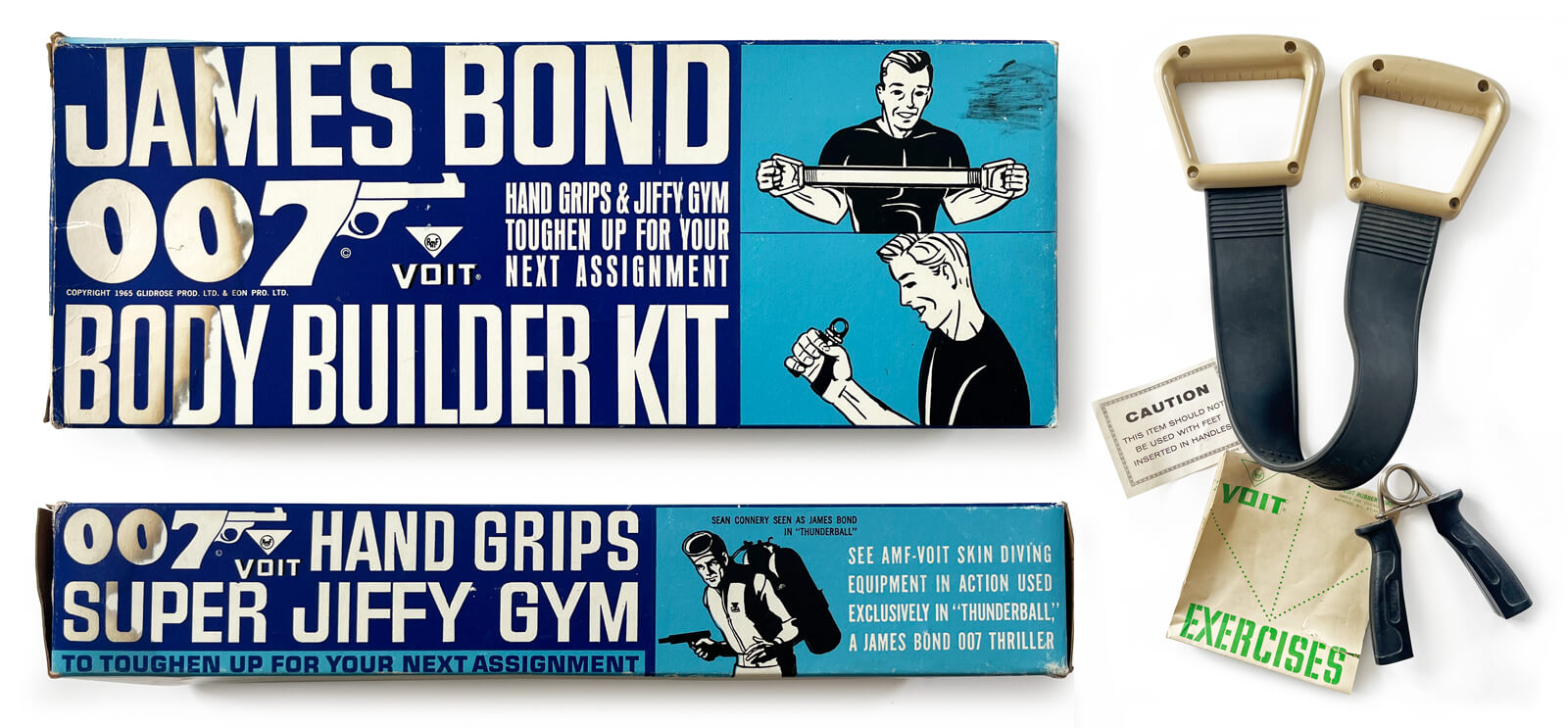 James Bond Body Builder Kit with hand grips and super jiffy gym (Voit, US, 1965)