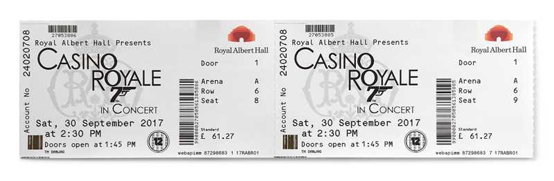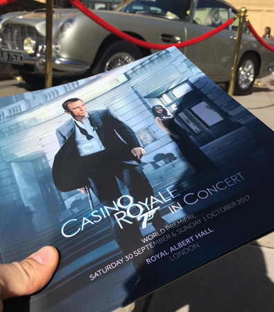 The weekend of 30th September and 1st October 2017 saw the world premiere of Casino Royale in Concert held at the Royal Albert Hall in London, with the music score being performed live by the Royal Philharmonic Concert Orchestra. The concert started with a Q&A session with the films composer David Arnold, who was a pleasure to listen to and it was great to hear his enthusiasm for the Bond canon and the late, great John Barry. The film then started as the strings, brass and percussion of the Royal Philharmonic kicked. From start to finish the concert was breath-taking, and it was fantastic to hear such a powerful score played by a live orchestra. Below are some images from the event, including the nice touch on an original Aston Martin DB5 parked outside the Albert Hall. I really hope that do some other Bond concerts in the future along these lines, as it would be superb to hear some of the Barry scores played live, especially one of my favourites On Her Majesty's Secret Service.