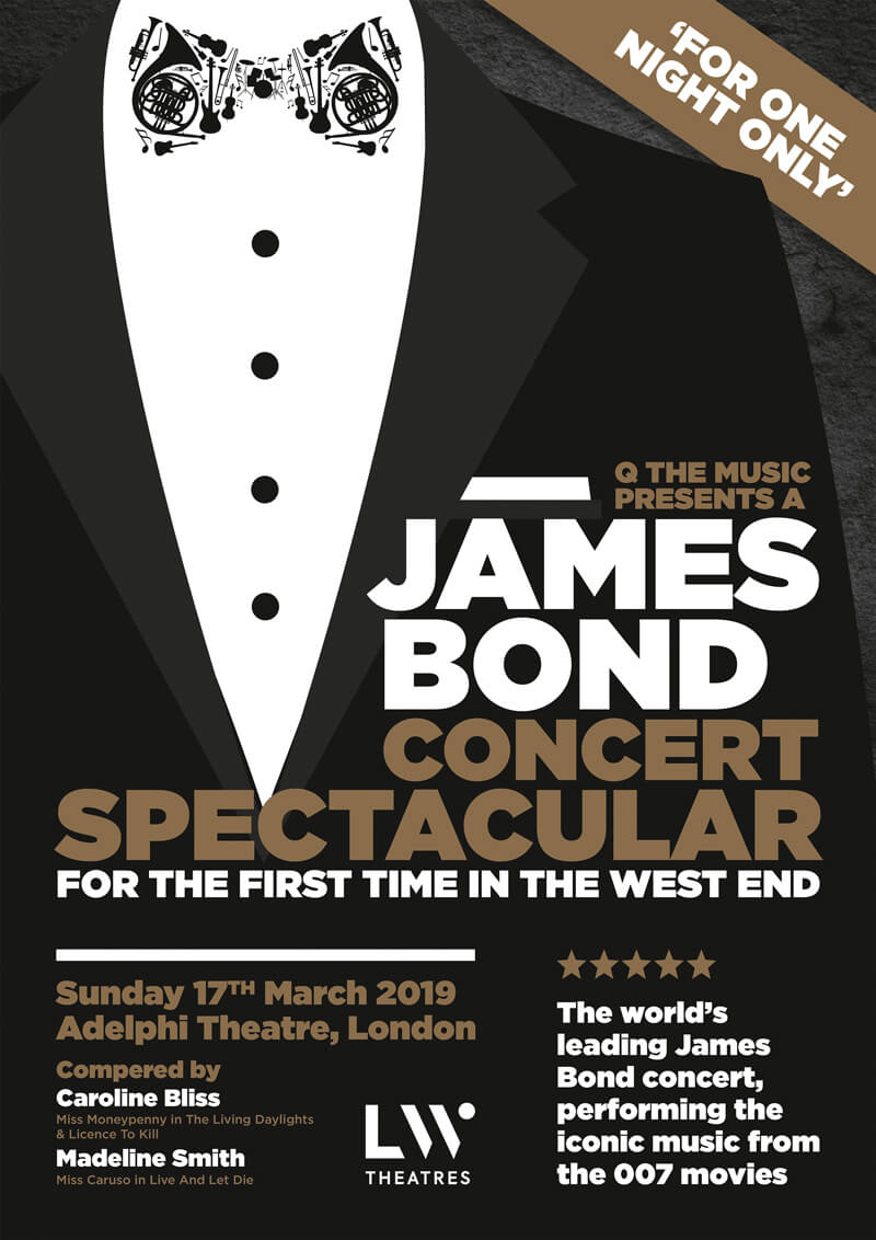 On the 17th March 2019 Q The Music played to a packed Adelphi Theatre on London's Strand as they brought their James Bond Concert Spectacular 'for one night only' to the West End for the very first time. The show was a sublime masterclass on the Bond sound. Not only was it bold, brassy Bond with renditions of most of the 007 theme songs, with amazing vocals from Kerry Schultz and Matt Walker, but the show also featured some wonderful music cues from Goldfinger, A View To A Kill and The Living Daylights. The show was compered by Bond Girls Maddie Smith (Miss Caruso in Live And Let Die) and Caroline Bliss (Miss Moneypenny in The Living Daylights and Licence To Kill) who told some delightful anecdotes of their time working on the Bond films alongside Sir Roger Moore and Timothy Dalton. It truely was an amazing event and everyone involved should be immensely proud of what they produced. Q The Music are on tour throughout 2019 and you can find out more about them here.
