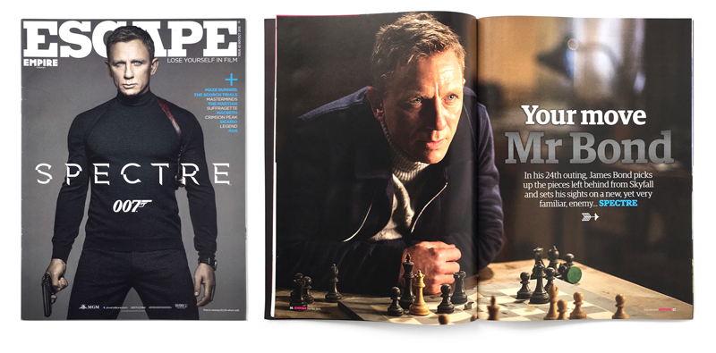 Empire magazine with Spectre cover and article - this is the standard retail cover (Bauer Media, UK, Issue.310, April 2015)