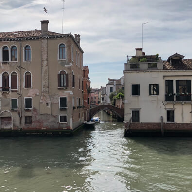 The canal and bridge in Venice as featured in the boat chase in Moonraker. This is the canal where the lovers in the gondola narrowly miss 007 in the Bondola but then have their boat cut in half by the pursuing speedboat. Located just around the corner from the locations shown above. (Visited May 2018)