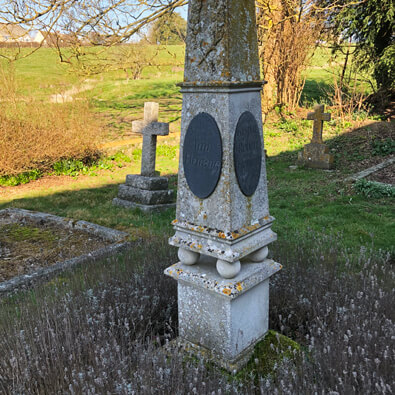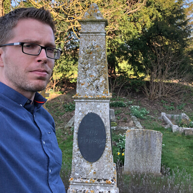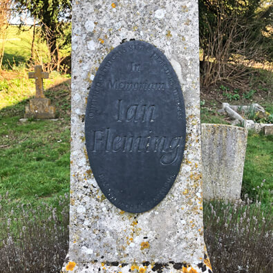 The grave of Ian Fleming who is buried, along with his wife Ann and son Caspar, in St James's Church in the small English village of Sevenhampton, near Swindon, Wiltshire. (Visited February 2019)