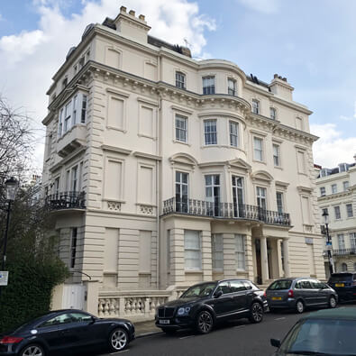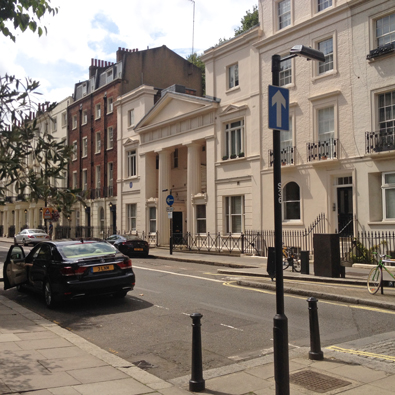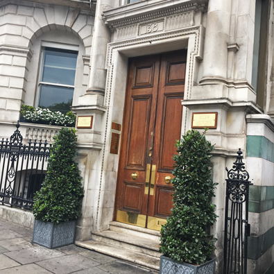 82 Cadogan Square, Knightsbridge, London which was used as the exterior of M's house in Skyfall. It also happens to be one of John Barry's former homes. (Visited March 2019)