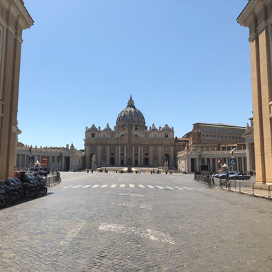 St Peter's Square, Rome as seen in Spectre. Bond drifts the Aston Martin DB10 in front of the famous basilica before continuing his chase with Mr Hinx through the back streets. (Visited July 2019)