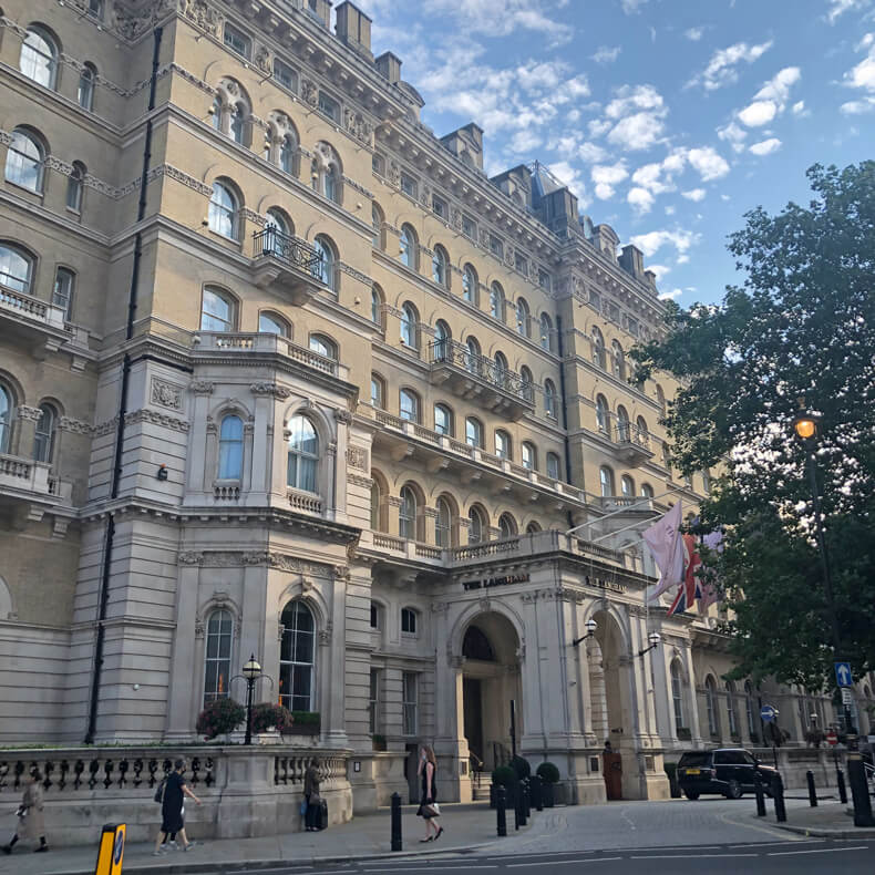 The Langham Hotel in London as seen in briefly in GoldenEye. This location doubles for the exterior of the hotel in St Petersburg where Bond encounters Xenia for the first time. (Visited August 2021)