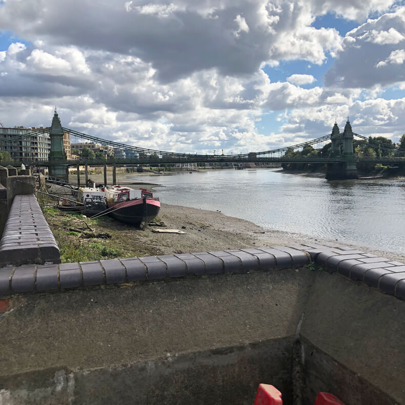 Hammersmith Bridge in London as seen in No Time To Die where Bond meets M before Tanner arrives. (Visited September 2021)