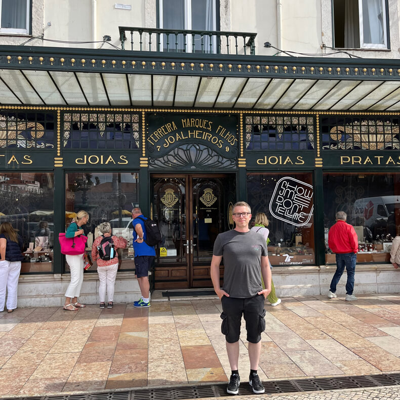 The Ferreira Marques Filhos jewellery shop in central Lison, Portugal where Bond goes to buy Tracy's engagement ring in On Her Majesty's Secret Service. (Visited May 2022)