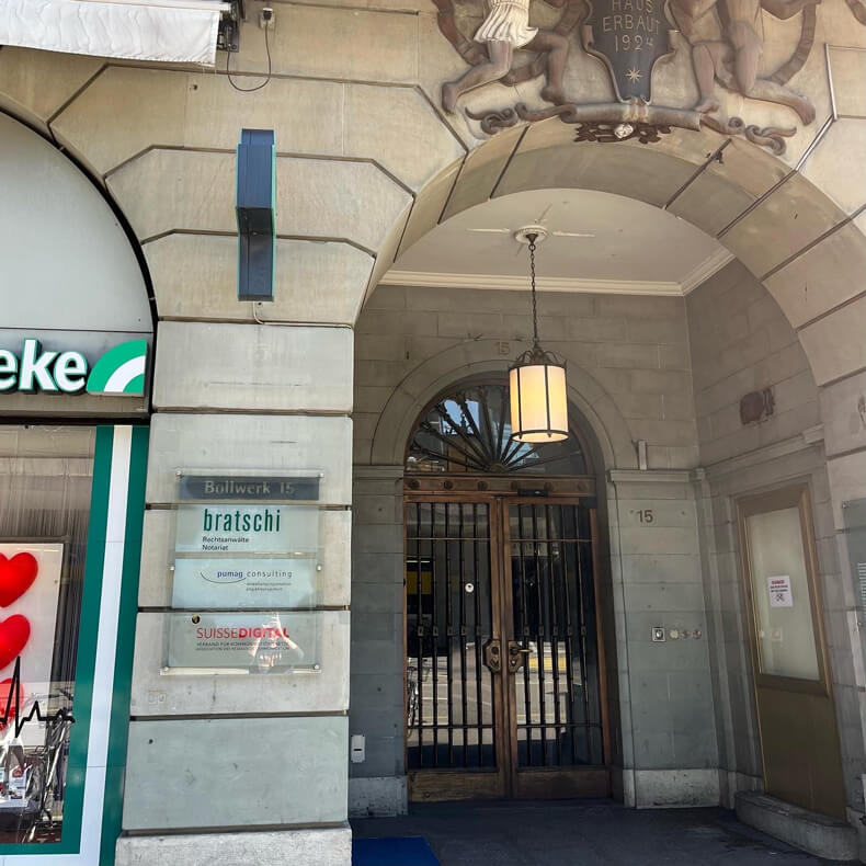 The entrance to Gumbold's office in Bern, Switzerland as seen in On Her Majesty's Secret Service. (Visited September 2022)