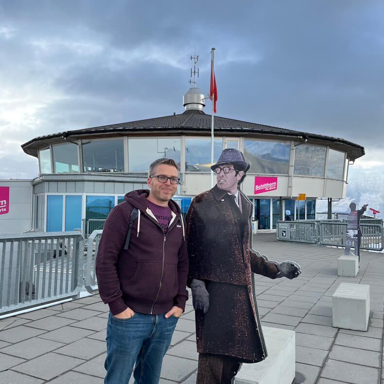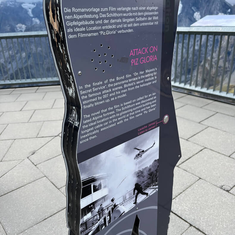 Piz Gloria, atop the Schilthorn mountain in Switzerland, which is used extensively as Blofeld's hideaway in On Her Majesty's Secret Service. (Visited September 2022)