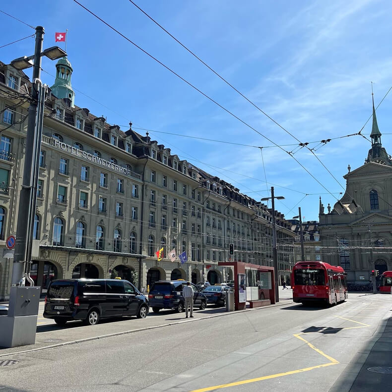 The Hotel Schweizerhof in Bern, Switzerland. This is the building you see Bond receive the safe cracking device by crane from Campbell in On Her Majesty's Secret Service. (Visited September 2022)