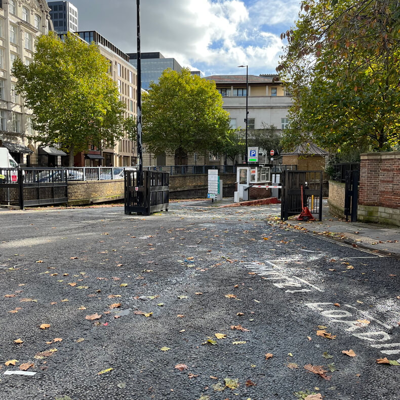 The entrance to the underground car park of Smithfield's Market, London, as seen in Skyfall which was used as the entrance to the Mi^ 'new digs". (Visited October 2022)