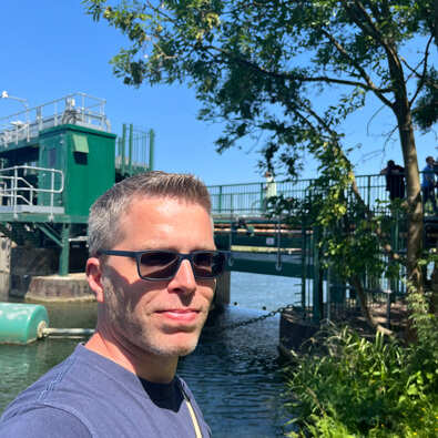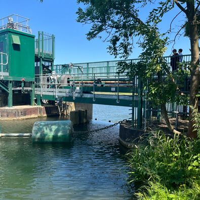 Orton Lock at the Nene Valley Railway, near Peterborough, as seen in Octopussy. This location doubled for West Germany and is where 009 got a knife in the back, fell into the water and was washed down stream. (Visited June 2023)