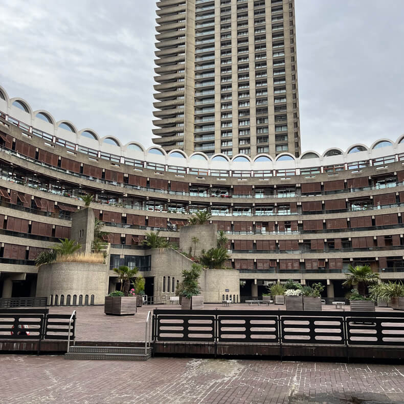 The quad seen as the establishing shot of M and Tanner leaving an MI6 building and being debriefed by Bond about Slate over the phone in Quantum Of Solace. Filmed at The Barbican, London (Visited October 2024)