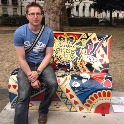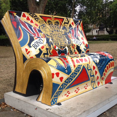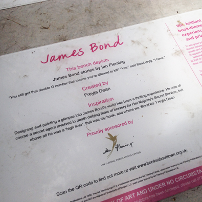 During the summer of 2014 50 uniquely designed book benches were placed around various locations in London. One was created for the James Bond stories (pictured) and placed in Bloomsbury Square Gardens. You can find out more about the Books about Town book benches