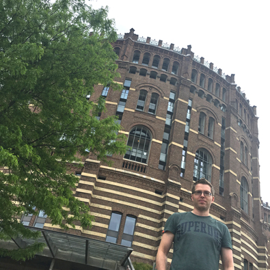The Gasometer buildings in Vienna as seen in The Living Daylights. These are the buildings where Koskov is seen climbing up the steps inside and his plane takes off from as part of his escape from Bratislava. (Visited May 2017)