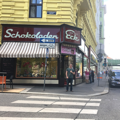 The shop Bond and Saunders use to try and protect Koskov whilst he defects in Bratislava in The Living Daylights. This shop is actually in Vienna and is opposite the Volksoper building seen below. (Visited May 2017)