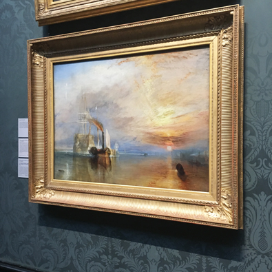 The Fighting Temeraire by Joseph Mallord William Turner as seen in the scene with Bond and Q in Skyfall. This is located in Room 34 of the National Gallery on the corner of Trafalgar Square. Unfortunately the painting is no longer hung in the exact same place as it is seen in the film. (Visited September 2017)