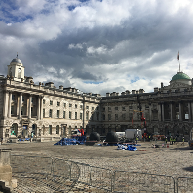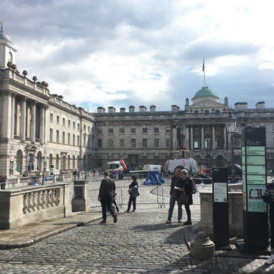 Somerset House which doubled as a St Petersburg square in GoldenEye when Zukovsky's car breaks down. It is also the Ministry of Defence when Bond is seen driving the Aston Martin DB5 in Tomorrow Never Dies. Somerset House is located just off the Strand, London. (Visited September 2017)
