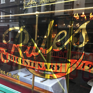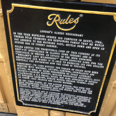 Rules Restaurant in London as seen in Spectre as M dines alone. I have visited the outside of this location before, but it was lovely to be able to finally go in and enjoy their fabulous food, highly recommended. (Visited August 2021)