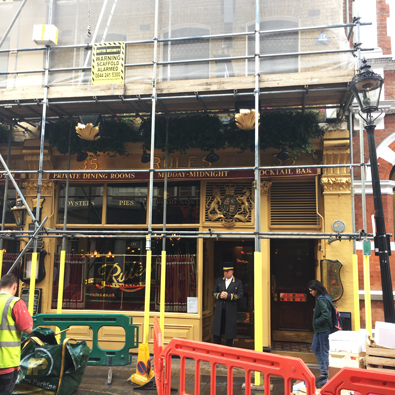 Rules restaurant where is is seen dining in Spectre. Alas, the street was having work done to it on the day I visited hence the works and scaffolding. Rules can be found at 34-35 Maiden Lane, London. (Visited September 2017)