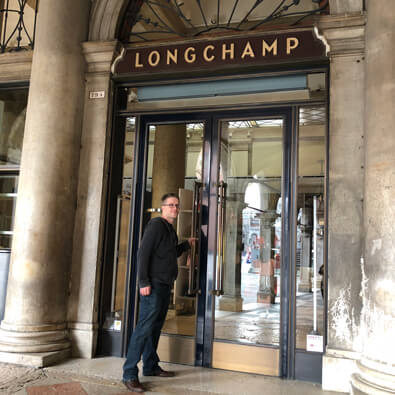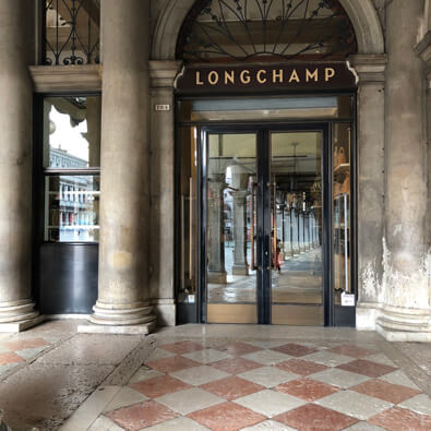 The Longchamp shop in Venice as featured in Casino Royale. Located at 79a St Marks Square this is the shop that doubled as the Basel Bank you see Bond enter in pursuit of Vesper. (Visited May 2018)