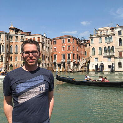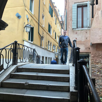 The scene of the sinking palazzo in Venice as featured in Casino Royale. Located just past the Rialto Bridge the red building was digitally replaced in post production with a miniature model they filmed sinking. (Visited May 2018)
