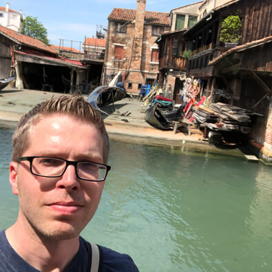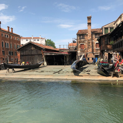The gondola boat yard in Venice as featured in Moonraker. This can be seen in the gondola boat chase scene and is located just around the corner from the Squero di San Trovaso. (Visited May 2018)