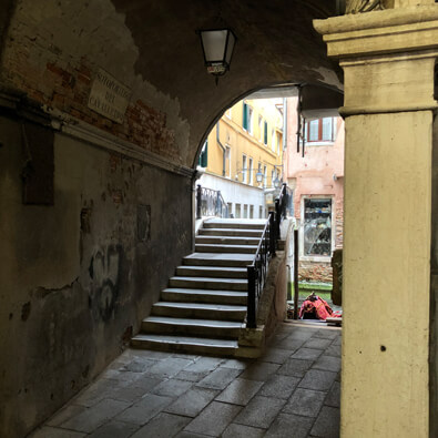 Two of the bridges seen in the scene where Bond chases Vesper through the streets of Venice in Casino Royale. The top images are from Sotoportego Del Cavaletto just off St Mark's Square. The bottom images are of Ponte del Malpaga bridge near the church of San Barnaba. (Visited May 2018)