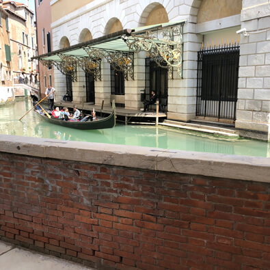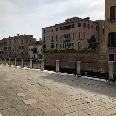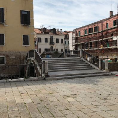 Three small locations all next to each other in Venice as featured in Moonraker. First are the buildings and canal you see Bond and Dr Holly Goodhead outside when 007 surprises her after they have both left the glass museum. Then is the bridge that Dr Goodhead leaves over and lastly are the steps that Bond takes to get into the waiting gondola. These are all located near the corner of Fondamenta Misericodia and Fondamenta S. Felice. (Visited May 2018)