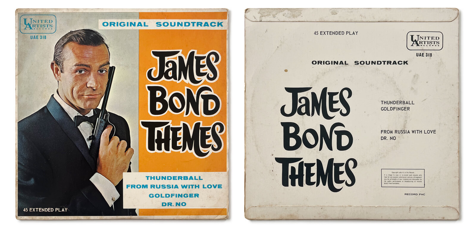 James Bond Themes EP featuring the themes from Thunderball, Goldfinger, From Russia With Love and Dr No (United Artists Records, South Africa, c.1965)