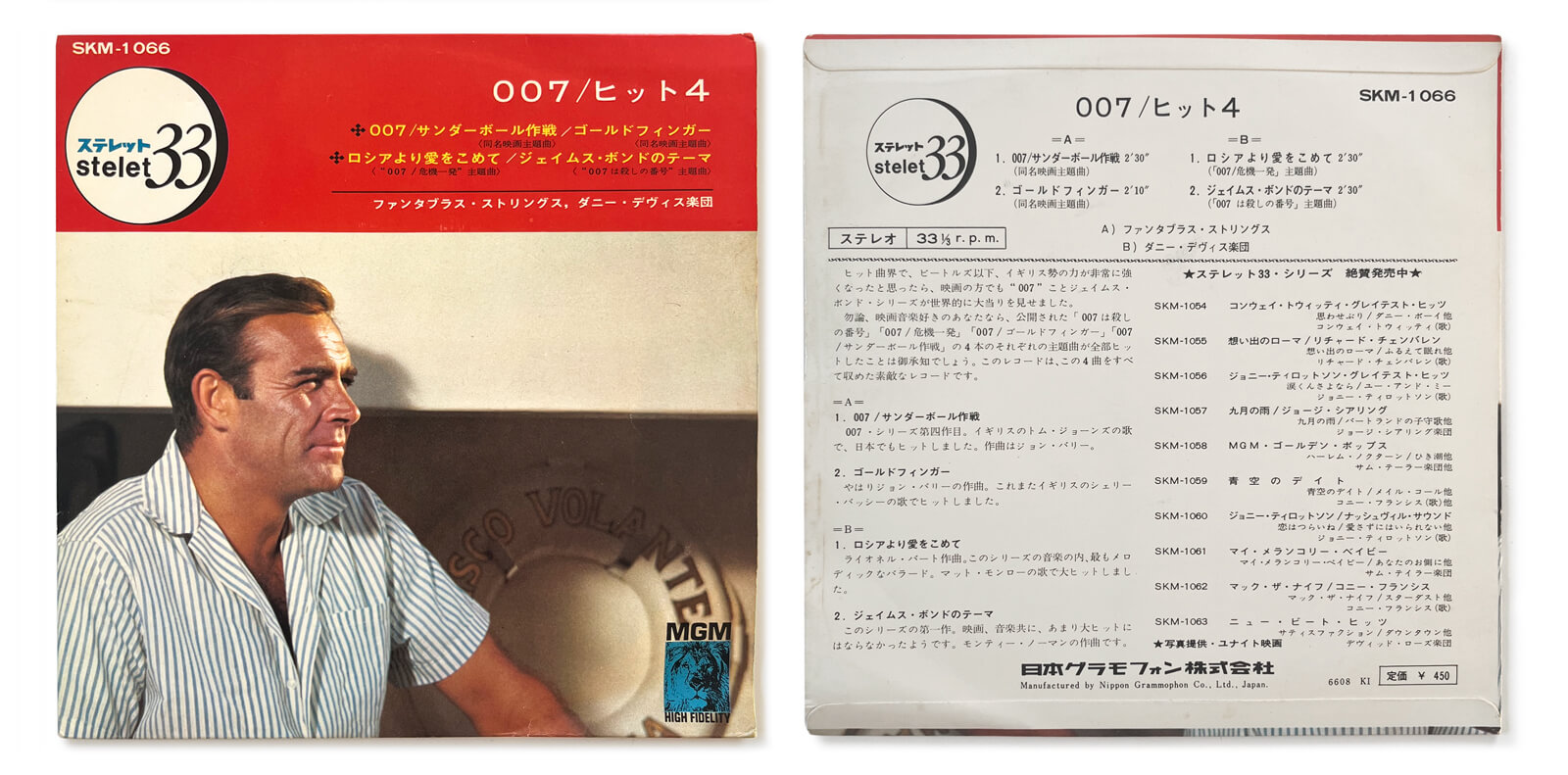James Bond EP featuring Goldfinger, the James Bond theme, From Russia With Love and 007 (Victor, Japan, c.1964)