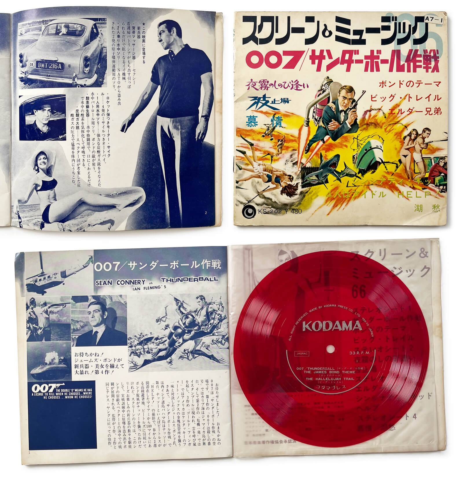 James Bond themes EP featuring four Bond theme tunes released on red flexidisk (Kodama Press Co, Japan, 1965)