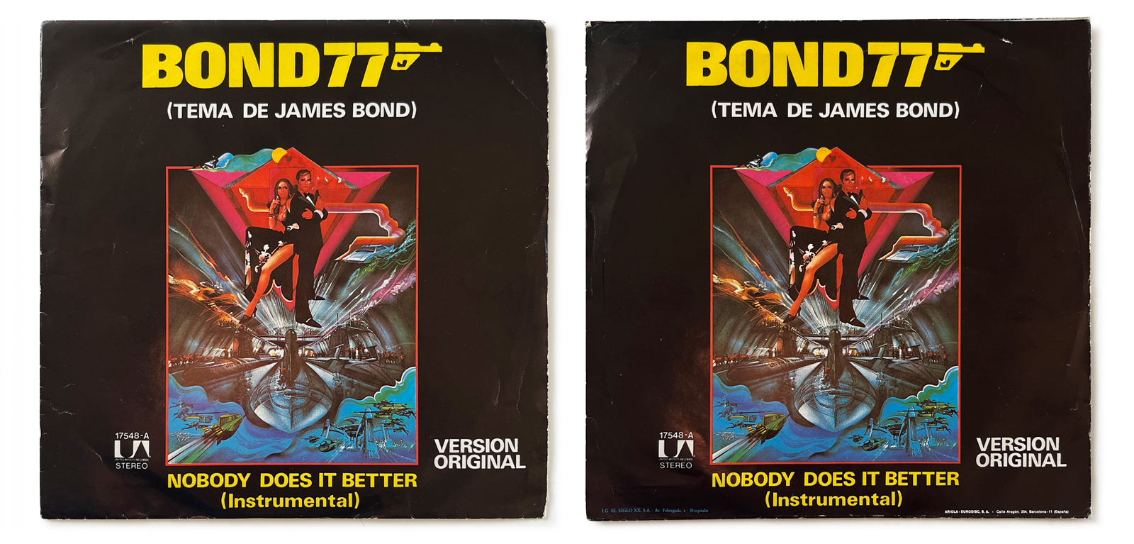 Bond 77 and Nobody Does It Better instrumental themes from The Spy Who Loved Me (United Artists Records, Spain, 1977)